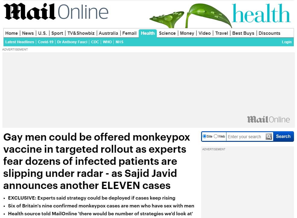 Геям могут предложить вакцины против обезьяньей оспы в рамках целенаправленного развертывания для борьбы со вспышкой в Великобритании, где сегодня число заболевших выросло вдвое. Об этом пишет британская газета Daily Mail.