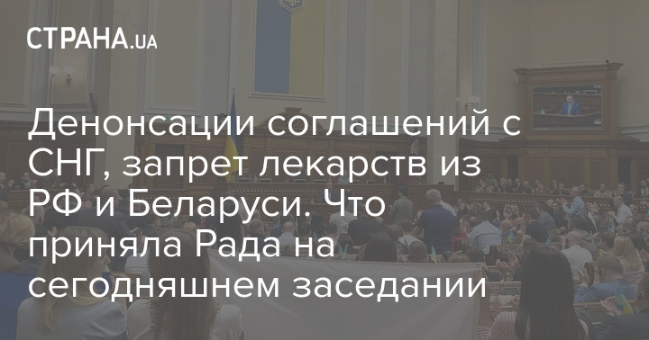 Денонсации соглашений с СНГ, запрет лекарств из РФ и Беларуси. Что приняла Рада на сегодняшнем заседании