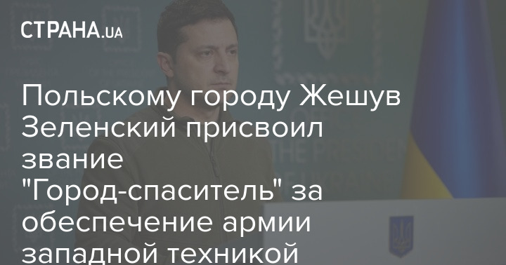 "Перед этим выступлением я подписал указ, который отмечает особую роль польского города Жешув. Я ввел специальное почетное звание "город-спаситель" для городов-партнеров нашей государства, которые сегодня делают невозможное для помощи нам, для помощи нашим людям, для помощи нашей армии. От имени всего Украинского народа я выскажу большую благодарность городу Жешуву – первому городу-спасителю", - сказал Зеленский в Верховной Раде.