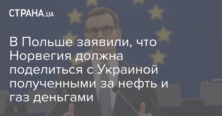 Об этом заявил премьер-министр Польши Матеуш Моравецкий. По его словам, прежде всего норвежцы должны отдать часть денег Украине.