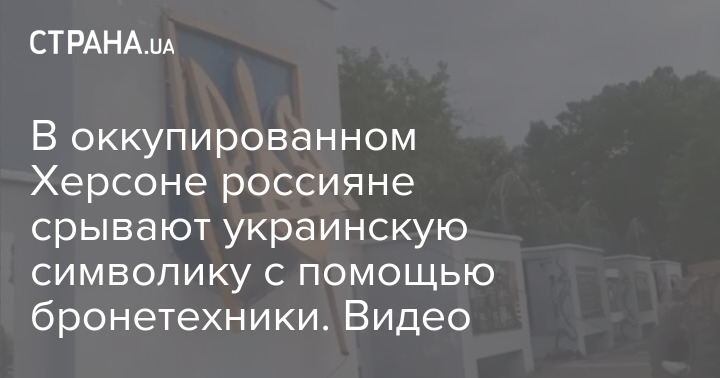 В Сети появилось видео о том, как в оккупированном Херсоне россияне срывают украинскую символику при помощи бронетехники.