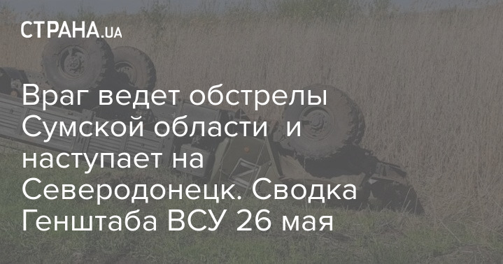 В Генеральном штабе Вооруженных сил Украины опубликовали оперативную сводку по состоянию на 18:00 26 мая, в которой сообщается, что противник не прекращает ведение наступательных действий в Восточной операционной зоне и продолжает наносить ракетные и авиационные удары по объектам инфраструктуры на территории Украины
