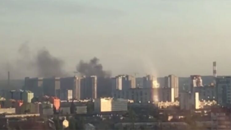 Причины пожара пока не сообщают, дым виден с правого берега.