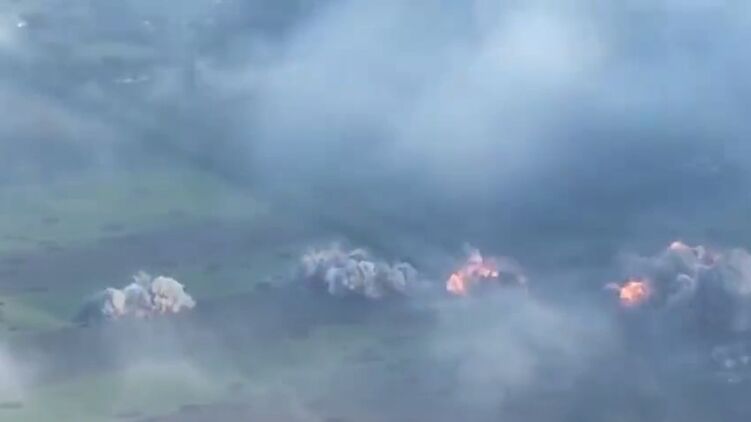 Советник главы ОП Михаил Подоляк показал видео работы российской тяжелой огнеметной системы ТОС-1А "Солнцепек" по позициям украинских войск.