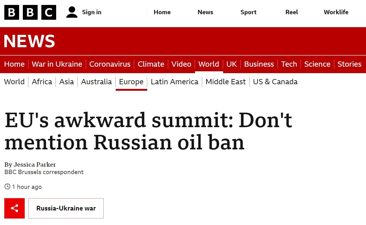 Издание ВВС опубликовало статью, в которой сомневается, что эти санкции удастся ввести на ближайшем саммите Евросоюза, который пройдет 30-31 мая. Издание называет его "неуклюжим" или "неловким" (awkward).