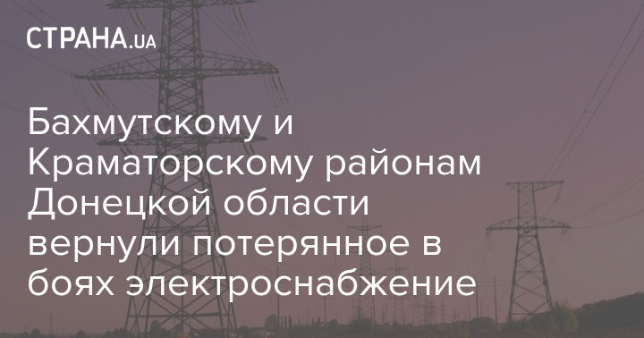 Электроснабжение Бахмутского и Краматорского районов Донецкой области восстановлено. Также там сегодня могут дать воду.
