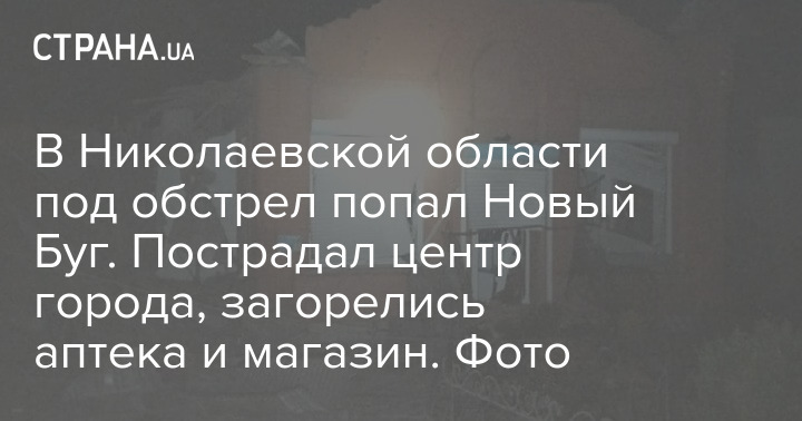 В Николаевской области под обстрел попал Новый Буг. Пострадал центр города, загорелись аптека и магазин. Фото