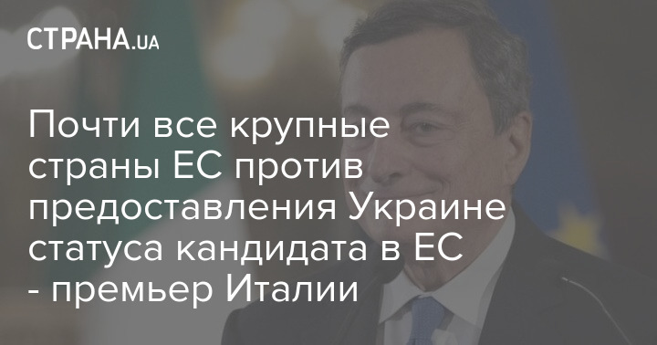 Премьер-министр Италии Марио Драги заявил, что почти все крупные страны Евросоюза выступают против предоставления Украине статуса кандидата в ЕС.