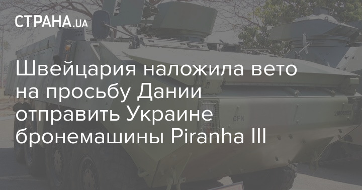 В Швейцарии наложили вето на запрос Дании на отправку вышеупомянутых бронетранспортеров в Украину - сославшись на ее политику нейтралитета, заключающуюся в отказе от поставок оружия в зоны конфликта.
