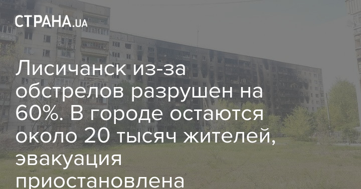 Лисичанск из-за обстрелов разрушен на 60%. В городе остаются около 20 тысяч жителей, эвакуация приостановлена