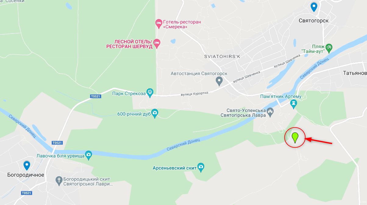 Также сегодня в этом районе сгорел Всехсвятский деревянный скит. Он расположен в полукилометре к юго-востоку от Святогорской лавры.