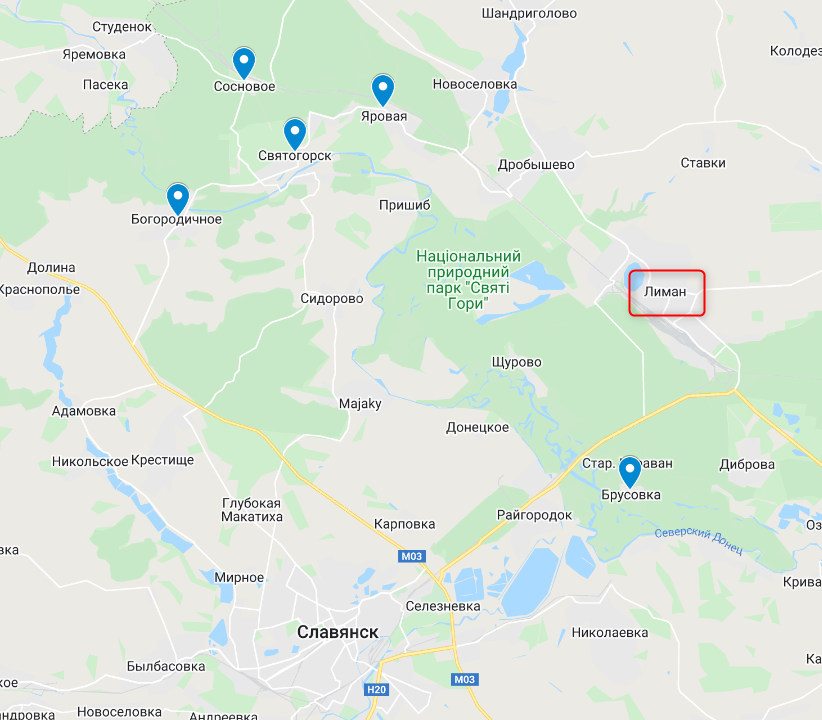 В этом районе противник снова штурмовал Богородичное на правом, более высоком берегу Донца. И Святогорск на левом берегу, о чем сегодня рассказал губернатор Харьковской области Синегубов (оба населенных пункта находятся на Донетчине).