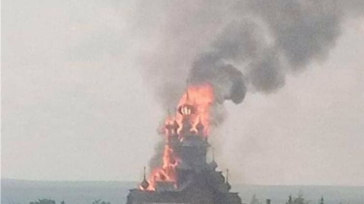 Российские военные обстреляли самый большой деревянный храм в Украине, расположенный в Донецкой области. В результате обстрела там начался сильный пожар.