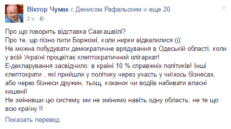 Ого, Саакашвили ушёл в отставку. В принципе правильно, если его главная цель - борьба с коррупцией. У губернатора тут полномочий нет.