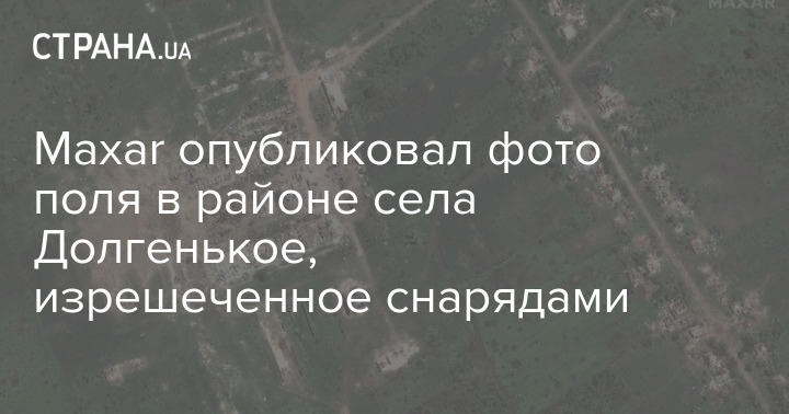 Maxar Technologies публикует фото поля в районе села Долгенькое, изрешеченного снарядами, а также огромную воронку от взрыва в самом селе.