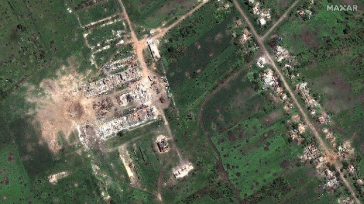 Пострадавшее от военных действий село Долгенькое. Фото: Maxar Technologies