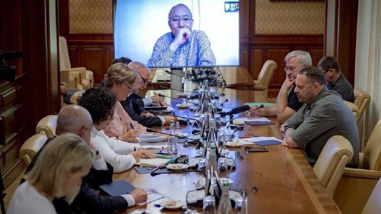 - обсудили вопросы послевоенного обновления Украины. Проинформировал послов об инициативе Владимира Зеленского, предусматривающей взятие странами-партнерами шефства над отдельными городами или регионами с обеспечением полного контроля за использованием финансовых ресурсов. Странам "Большой семерки" было предложено активно участвовать в этой инициативе.