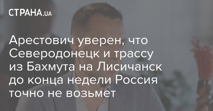 Советник главы Офиса президента Алексей Арестович смягчил свое предсказание о "сложной и жаркой неделе" для ВСУ. Он заявил, что Северодонецк и трассу из Бахмута на Лисичанск на этой неделе "точно не возьмут".