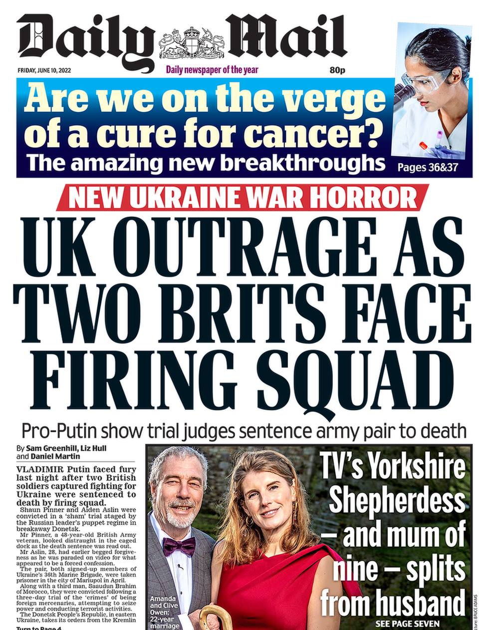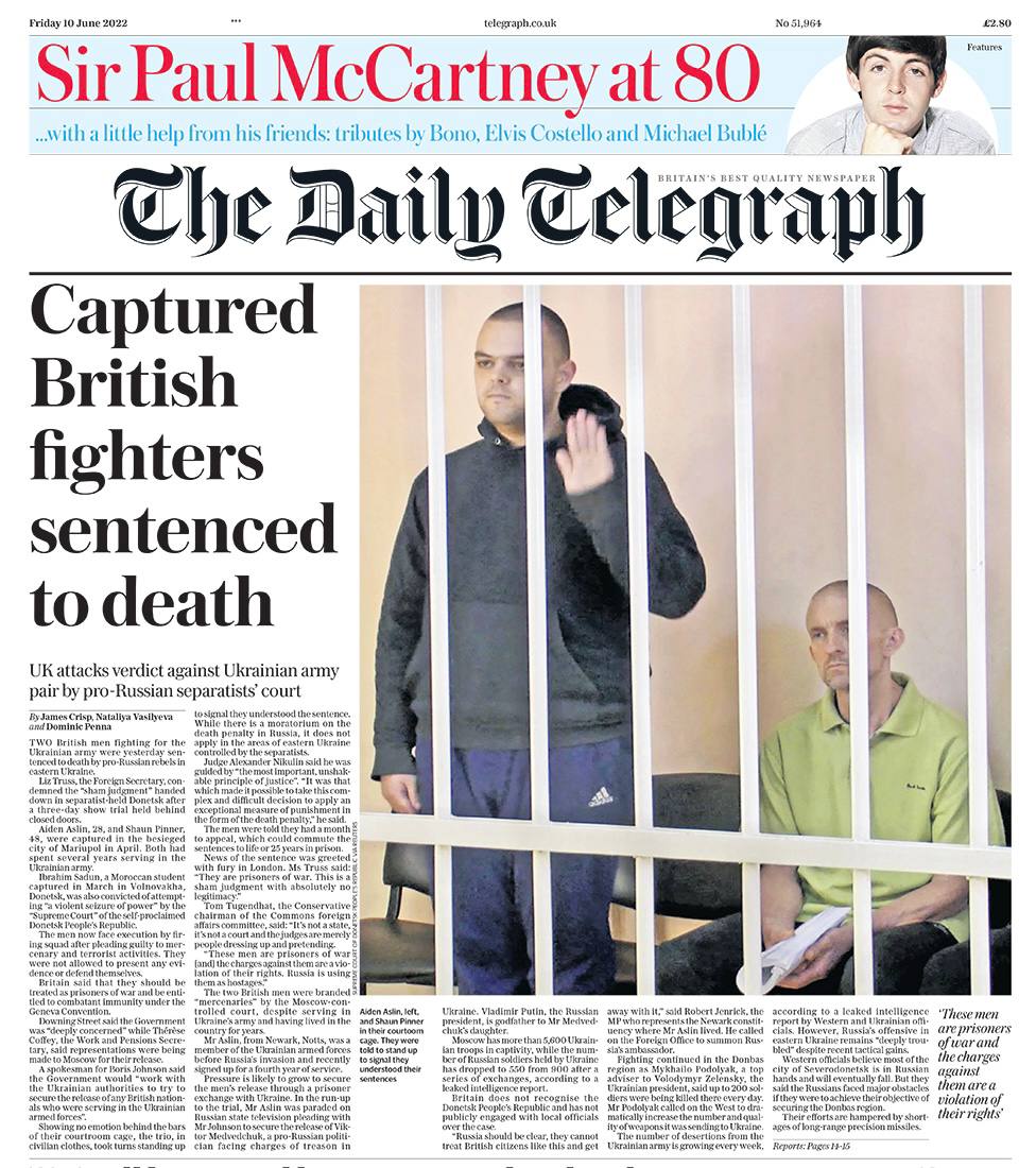08:17 Смертный приговор двум британцам в "ДНР" - тема №1 английских газет этим утром.