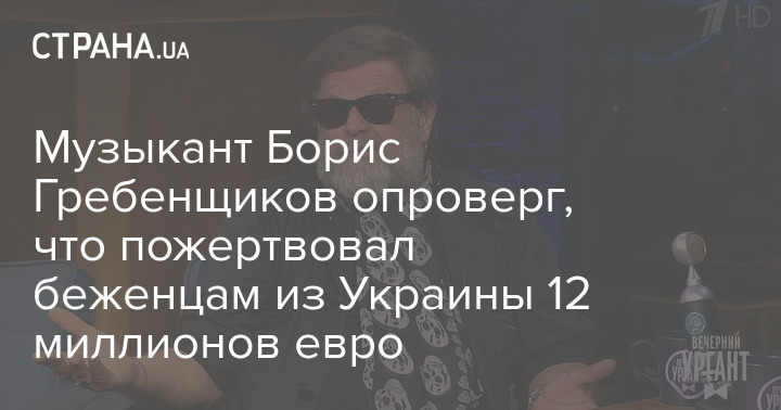 Российский музыкант Борис Гребенщиков опроверг слухи о том, что он пожертвовал беженцам из Украины 12 миллионов евро. Он признался, что у него никогда не было такой суммы денег.