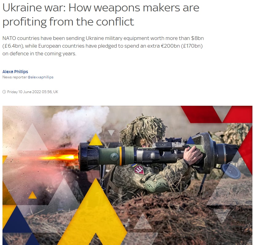 Телеканал Sky News рассказал, "как производители оружия наживаются на конфликте" в Украине (так звучит заголовок материала).