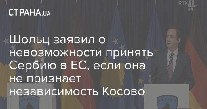 Сербия без признания независимости Косово (частично признанной республики, которую сербы считают территорией своей страны) не вступит в Евросоюз. Об этом заявил канцлер Германии Олаф Шольц во время встречи с косовским премьером Альбином Курти в эфире Радио и телевидения Косово.