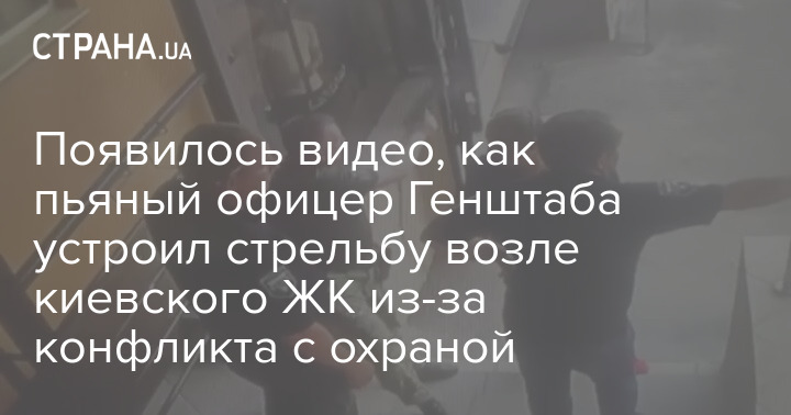 На видео с камер наблюдения видно, как возле входа в ЖК сотрудник Генштаба что-то эмоционально рассказывает трем охранникам, а потом нервно достает оружие и направляет его на ноги собеседнику. Тот спокойно отводит руку с пистолетом от своей ноги, а через несколько секунд неуверенно стоящий на ногах сотрудник Генштаба стреляет в сторону, даже особо не посмотрев, по чем он открывает огонь.