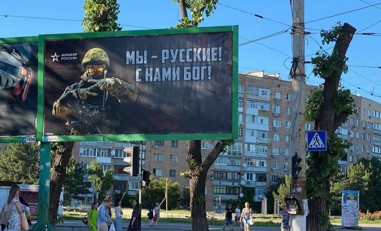 Так, например, в Луганске развесили плакаты с российскими военными, а в Мелитополе жителям раздают паспорта России.