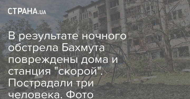 В результате ночного обстрела Бахмута пострадали три жилых дома и три инфраструктурных объекта, в том числе станция "скорой помощи".