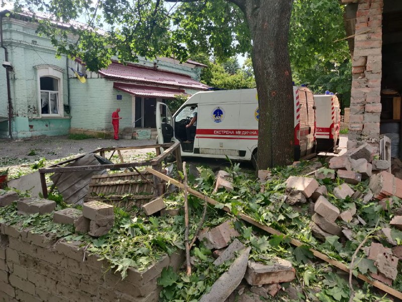 От попадания начался пожар, но спасатели оперативно его ликвидировали. По предварительным данным, пострадали три человека.