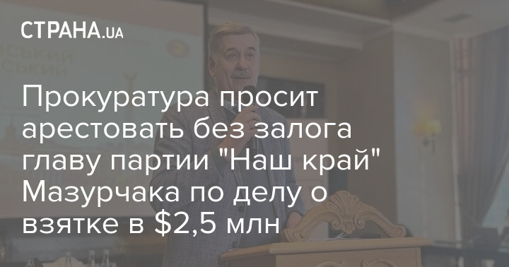 Прокуратура просит арестовать без залога главу партии "Наш край" Мазурчака по делу о взятке в $2,5 млн
