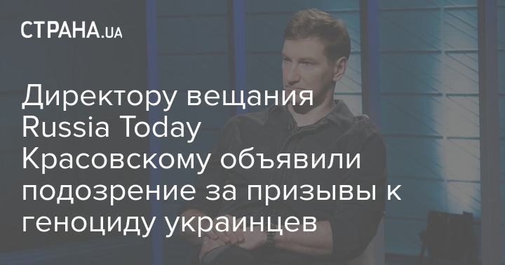 Директору вещания российского канала Russia Today Антону Красовскому в Украине объявили подозрение за публичные призывы к геноциду украинского народа.