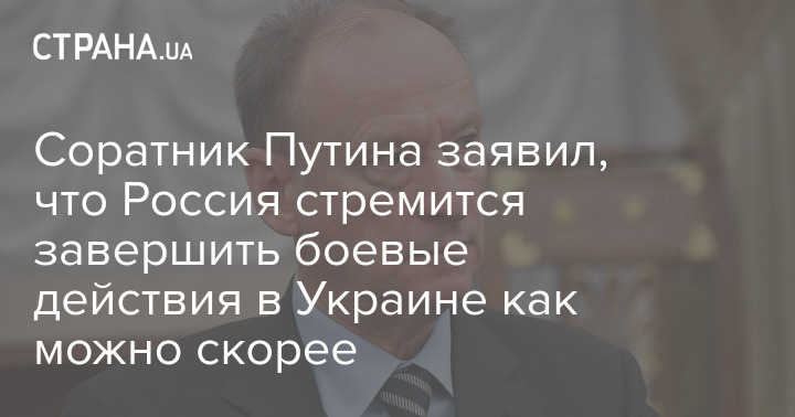 Один из ближайших соратников президента РФ Владимира Путина секретарь Совета безопасности России Николай Патрушев заявил, что Москва "стремится завершить боевые действия в Украине как можно скорее".