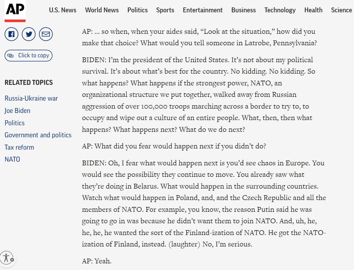 По его словам, если бы Путина не остановили в Украине, он бы пошел дальше, и пострадала бы Чехия, Польша, "и другие страны НАТО".
