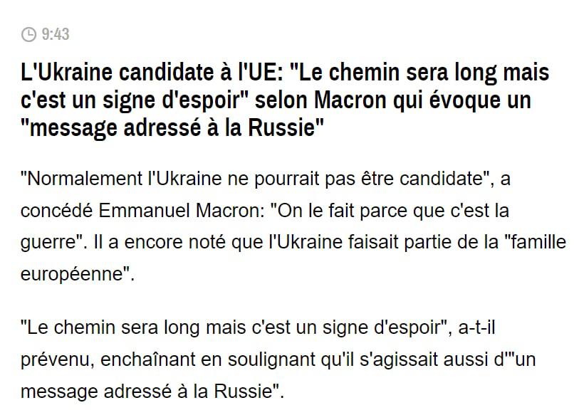 "По политическим и процедурным причинам возможно, что ЕС в конечном итоге решит, что сейчас не время. И даже если бы они согласились с мнением президента Еврокомиссии Урсулы фон дер Ляйен о том, что Украина должна быть рассмотрена на предмет членства, могут пройти годы, даже десятилетия, прежде чем это станет реальностью", – говорится в статье.