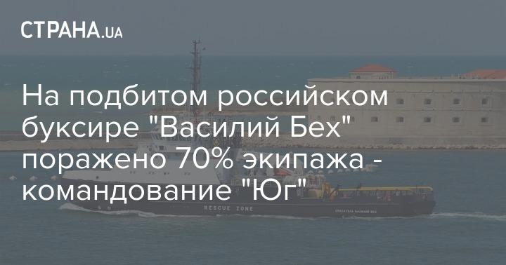 "Несмотря на оснащение зенитно-ракетным комплексом "Тор", буксир превращен в плавучий костер. По предварительным данным, поражено 70% экипажа, судьба остальных - неизвестна", - говорится в заявлении.