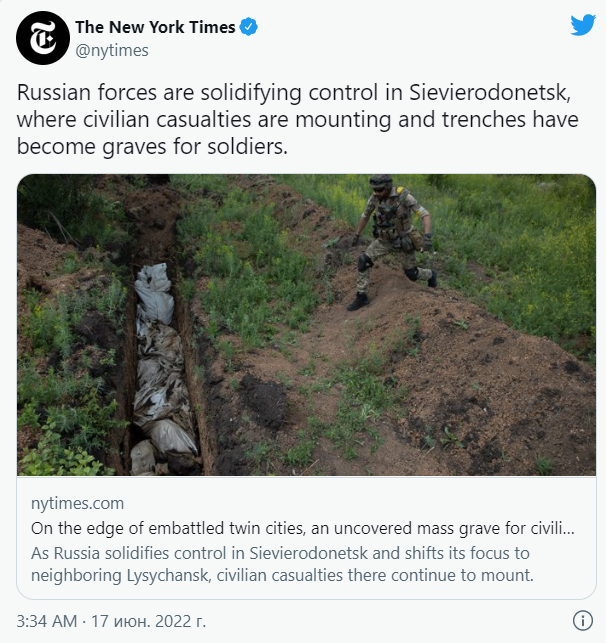 The New York Times опубликовала фото братской могилы на окраине Лисичанска. Фото: NYT