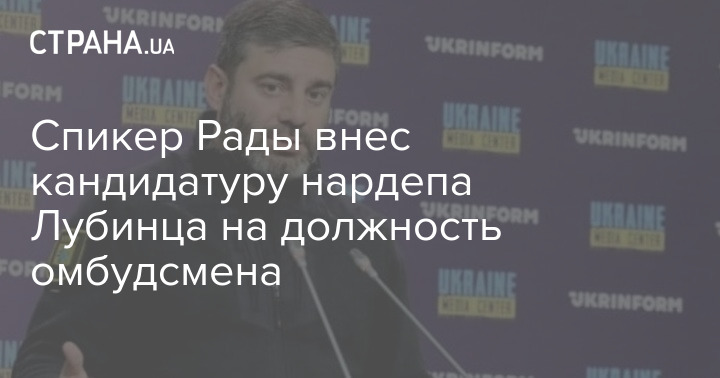 "Согласно требованиям законодательства, внес предложение по кандидатуре народного депутата Украины Лубинца Дмитрия Валерьевича на должность уполномоченного Верховной Рады Украины по правам человека", - написал Стефанчук.