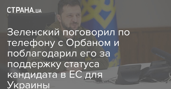 Зеленский поговорил по телефону с Орбаном и поблагодарил его за поддержку статуса кандидата в ЕС для Украины