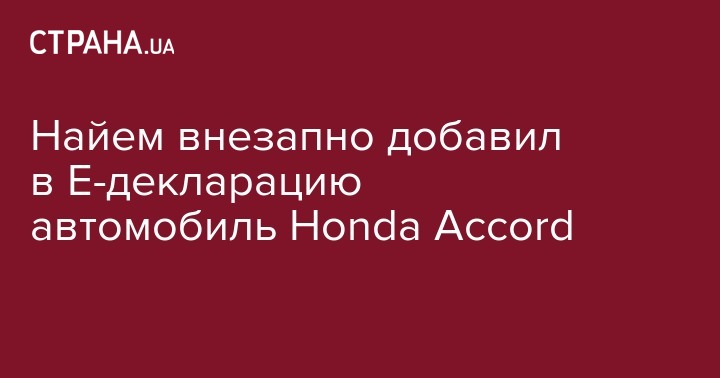 Нардеп Мустафа Найем ("БПП") внес существенные изменения в свою электронную декларацию. В перечень своего имущества и активов он добавил автомобиль Honda Accord (2008 год выпуска), купленный им за 364 тыс. гривен. Об этом указано в сообщении о существенных изменениях к ранее поданной им электронной декларации