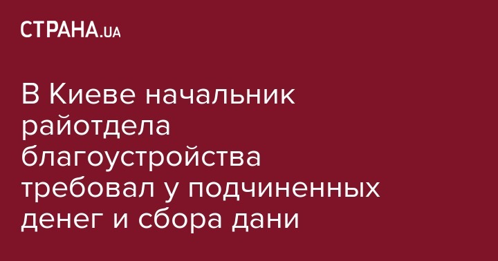 "Правоохранители установили, что чиновник требовал общую ежемесячную "дань" в размере 100 000 гривен от своих подчиненных. Деньги они должны были собирать с предпринимателей района за якобы выявленные при проверках нарушения правил благоустройства", - сказано в нем.