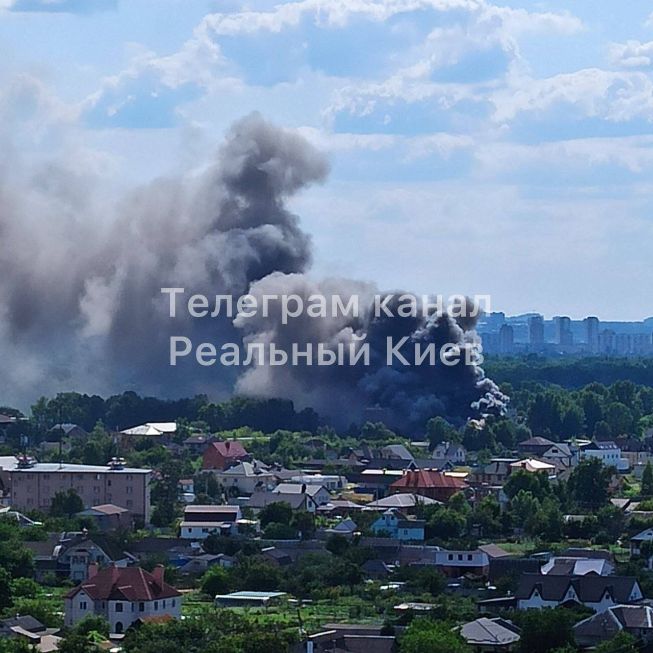 В субботу, 25 июня, на севере Киева произошел масштабный пожар. Клубы черного дыма видны из Оболони и с Троещины. Пламя разгорается из-за сильного ветра.
