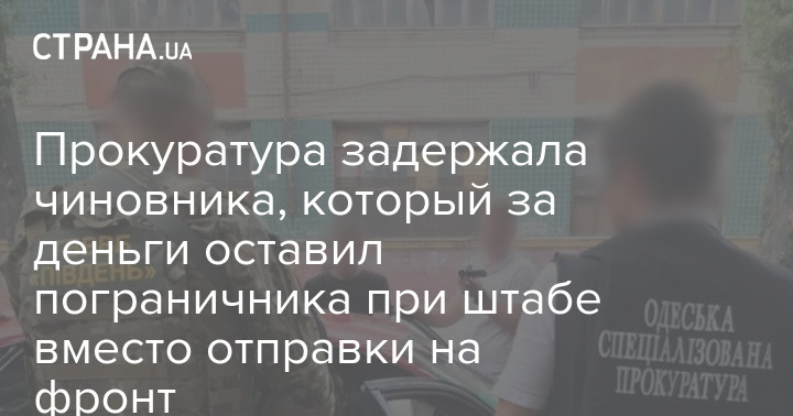 Офис генпрокурора сообщил о задержании чиновника, который взял 3700 долларов за перевод военнослужащего в штаб, чтобы тот избежал отправки на фронт.