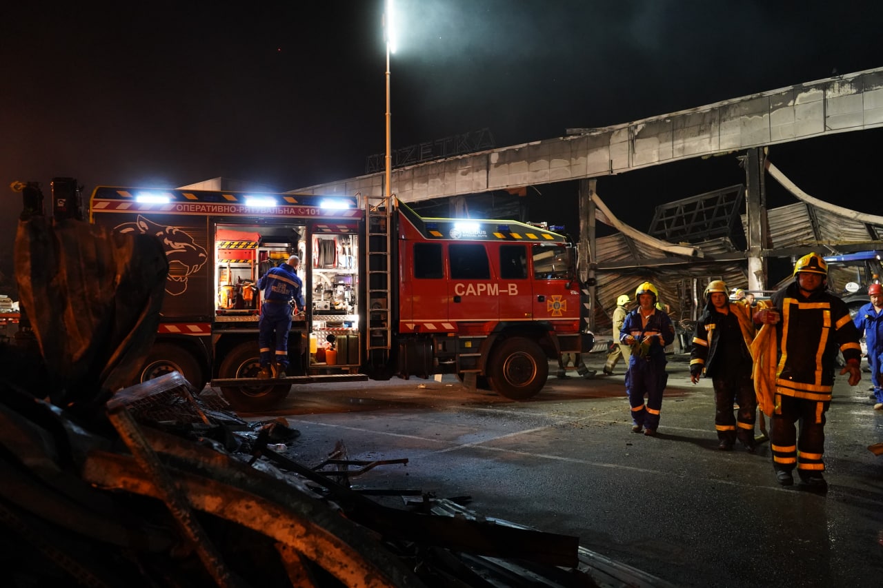 05.50 Спасатели продолжали работать на месте обстрела ТРЦ в Кременчуге и ночью. Фото ГСЧС.