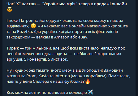 Ее, а также конверты, открытки, футболки, магниты и другую сувенирную продукцию "Українська мрія" можно купить в отделениях "Укрпошты" и онлайн.
