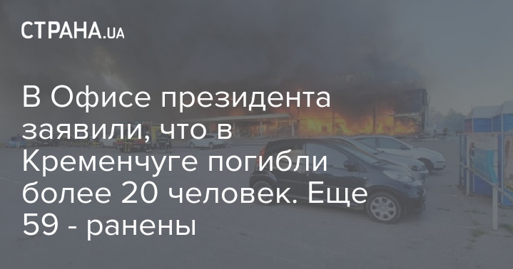 В Офисе президента заявили, что в Кременчуге погибли более 20 человек. Еще 59 - ранены