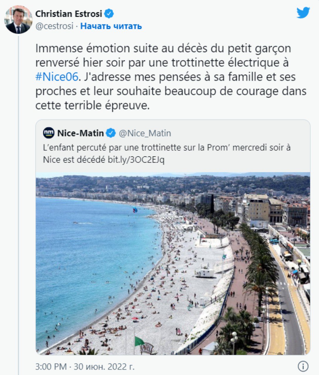 00.02 Пятилетний украинский ребенок-беженец был сбит насмерть во французской Ницце электрическим скутером.