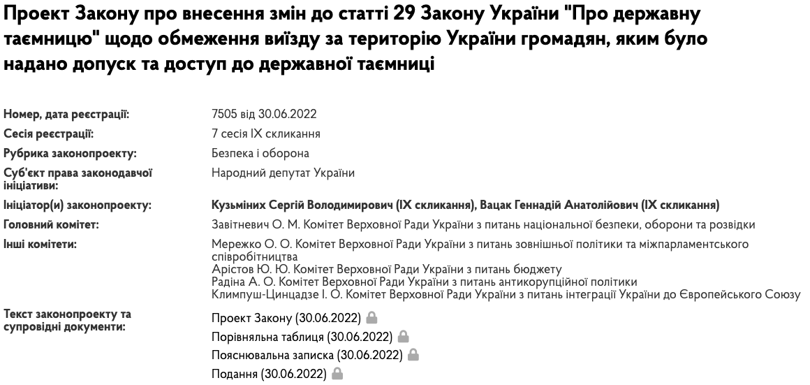 В случае принятия украинцы с доступом к гостайне смогут выехать за границу для служебных командировок, в составе правительственной или парламентской делегации.