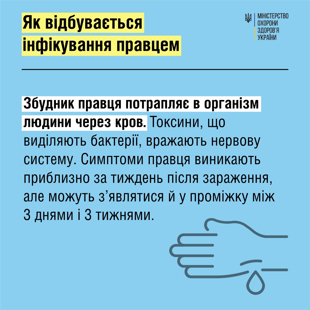 Минздрав публикует инфографику с подробной информацией о симптомах и процессе инфицирования столбняком.