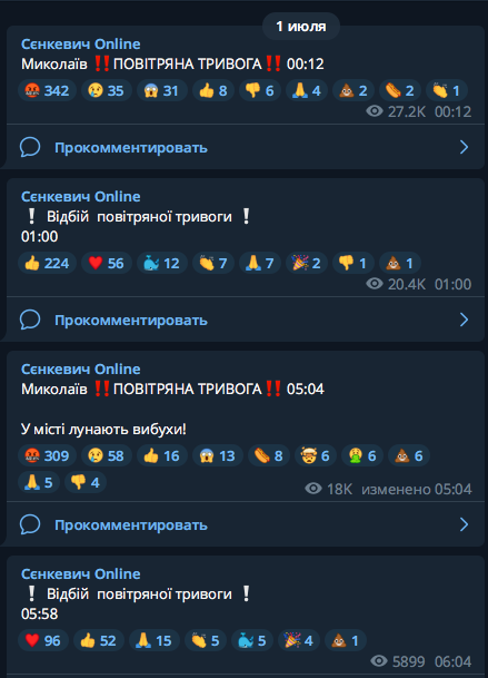 Других деталей он не уточнил. Воздушная тревога завершилась по состоянию на 05:58.